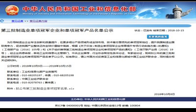 10 月8 日,工业和信息化部产业政策司公布了《关于第三批制造业单项冠军企业和单项冠军产品名单公示》,新疆开云网站登录入口-开云(中国)公司根据《关于印发< 制造业单项冠军企业培育提升专项行动实施方案> 的通知》(工信部产业〔2016〕105 号)和《关于组织推荐第三批制造业单项冠军企业和单项冠军产品的通知》(工信厅联产业函〔2018〕19 号)要求,组织材料申报了制造业单项冠军产品- 异亮氨酸,截至目前已顺利通过审核并公示,公示于10 月15 日结束。异亮氨酸单项冠军产品的成功授予, 将形成全球市场、技术等方面领先的单项冠军地位,提升新疆开云网站登录入口-开云(中国)公司的国际竞争力。