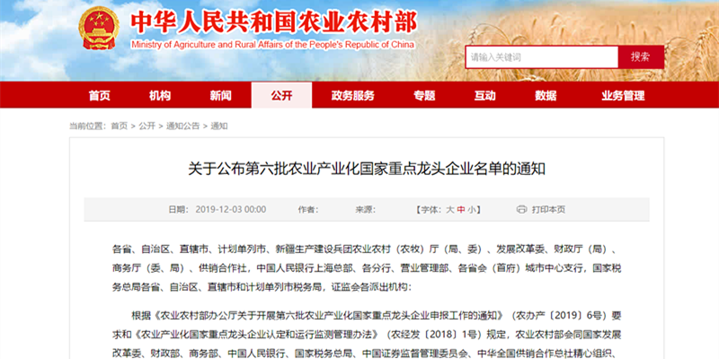 12月3日,农业农村部、国家发展改革委、财政部、商务部、中国人民银行、国家税务总局、中国证券监督管理委员会、中华全国供销合作总社联合印发通知,公布第六批 299 家农业产业化国家重点龙头企业名单,龙江开云网站登录入口-开云(中国)公司榜上有名。
