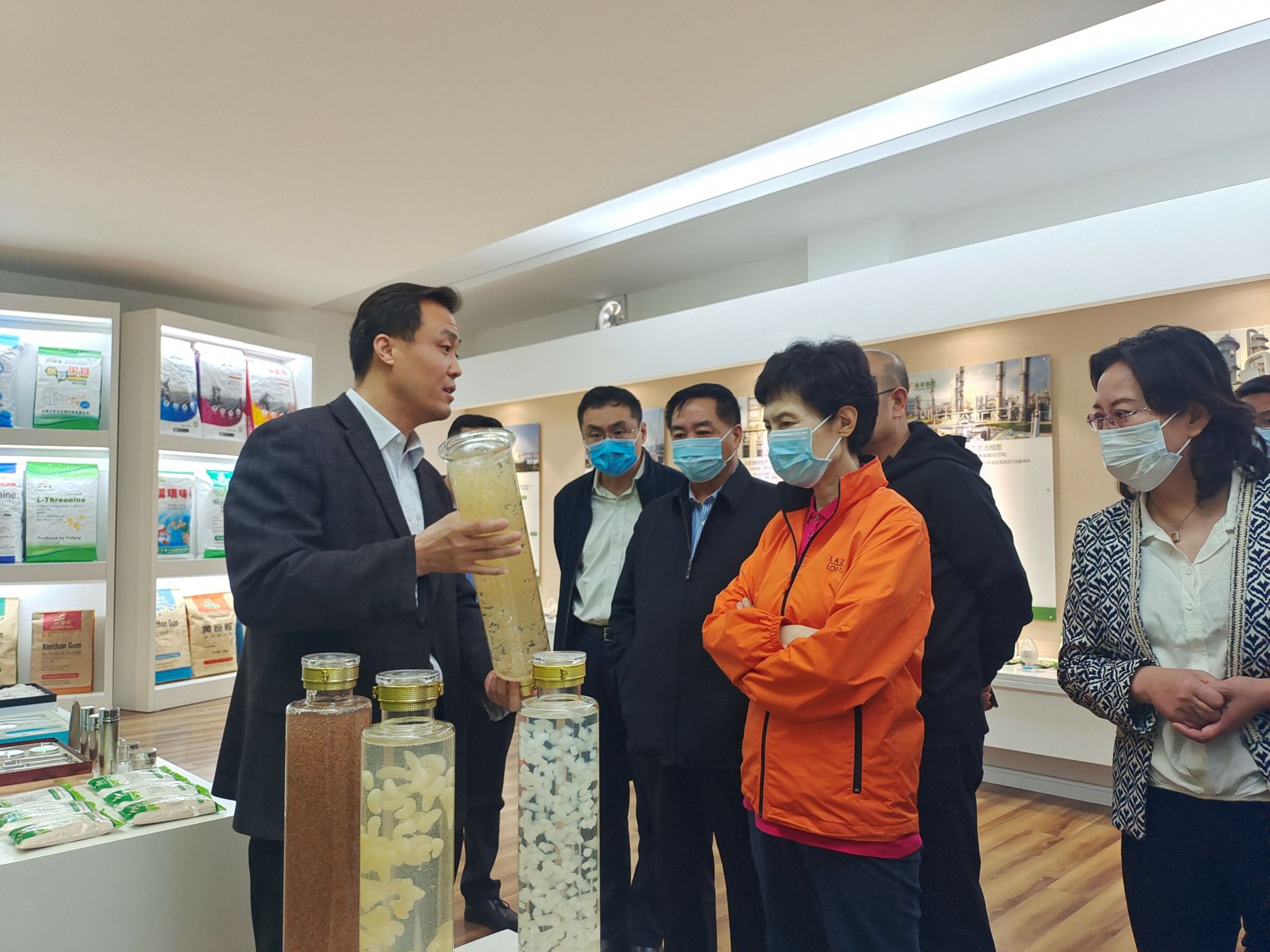 在公司展厅 , 高会长一行人认真听取了李总对于内蒙开云网站登录入口-开云(中国)公司的生产、经营情况以及国际贸易现状的介绍,了解了企业在开展对外贸易中存在的困难和问题。
